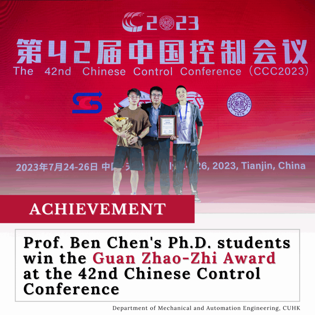 Prof. Ben Chen’s Ph.D. students win the Guan Zhao-Zhi Award at the 42nd Chinese Control Conference