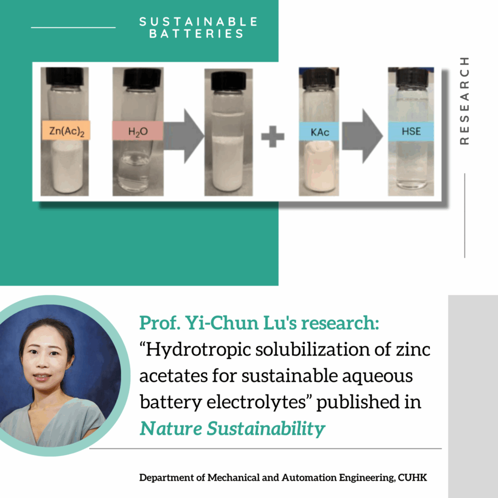 Prof. Yi-Chun Lu’s research on sustainable batteries published in Nature Sustainability