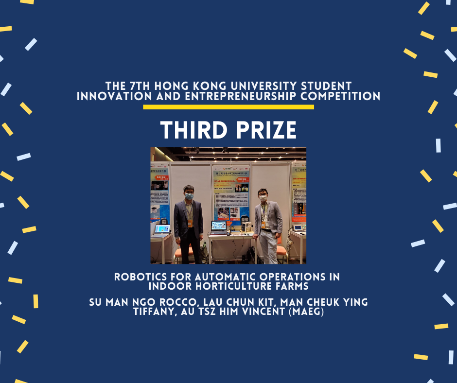 NEWS & AWARDS HOME DEPARTMENT AWARDS News Awards Undergraduate Student’s Winning Project: Virucidal, Reusable and Cost-Effective Respirator June 25, 2021 Undergraduate Student’s Winning Project: Robotics for Automatic Operations in Indoor Horticulture Farms June 24, 2021 Undergraduate Student’s Winning Project: Versatile Soft Robotic Upper Limb Assistive Device for the Physically Challenged June 23, 2021 The 7th Hong Kong University Student Innovation and Entrepreneurship Competition June 21, 2021 Undergraduate student’s winning project: Embedding 3D Security Features in 3D-Printed Parts for Enhanced Product Authentication June 18, 2021 Undergraduate student’s winning project: Teleoperated MRI-Compatible Needle Insertion Robot June 16, 2021 2021 Professor Charles K. Kao Student Creativity Awards June 16, 2021 Prof. Kwok Tsz-Ho, a MAE graduate, received the 2021 SME Geoff Boothroyd Outstanding Young Manufacturing Engineer Award May 21, 2021 The Second Prize Award in the “Intelligent +” Category: Intelligent Logistics handing April 21, 2021 The International Exhibition of Inventions Geneva 2021 March 26, 2021 MAE Vlog Competition Winners! March 22, 2021 Page1 … Page5 Page6 Page7 Page8 Page9 … Page11 2025 2024 2023 2022 2021 2020 2019 2018
