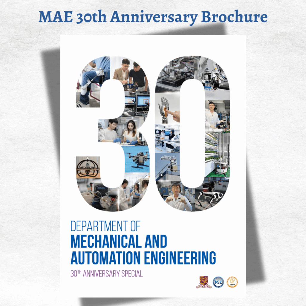 NEWS & AWARDS HOME DEPARTMENT NEWS News Awards MAE Graduation Dinner 2025 May 19, 2025 Prof. Zhang Li’s team unveils world-first magnetically driven patient-derived blood hydrogel robot for precise brain tumour therapy May 8, 2025 Prof. Fei Chen develops Collaborative Dual-arm Robot Manipulator (CURI) April 11, 2025 Prof. Li Zhang’s team develops world’s first antibiofilm liquid-bodied robot for precise eradication of implant-related biofilm infections April 7, 2025 MAE Career Fair 2025 March 26, 2025 MAE Alumni Homecoming March 25, 2025 The 1st MAE Career Fair on 21 March 2025 March 14, 2025 Prof. Chen Ben M. and Prof. Chen Xi receive Gold Medal with the Congratulations of the Jury at the 15th International Invention Fair in the Middle East February 27, 2025 Prof. Zhang Li’s team develops inverse programming technology for magnetic soft materials that can advance precision medicine February 24, 2025 Prof. Li Zhang elected as Fellow of ASME January 24, 2025 MAE 30th Anniversary Brochure January 22, 2025 Page1 Page2 Page3 Page4 … Page11 2025 2024 2023 2022 2021 2020 2019 2018